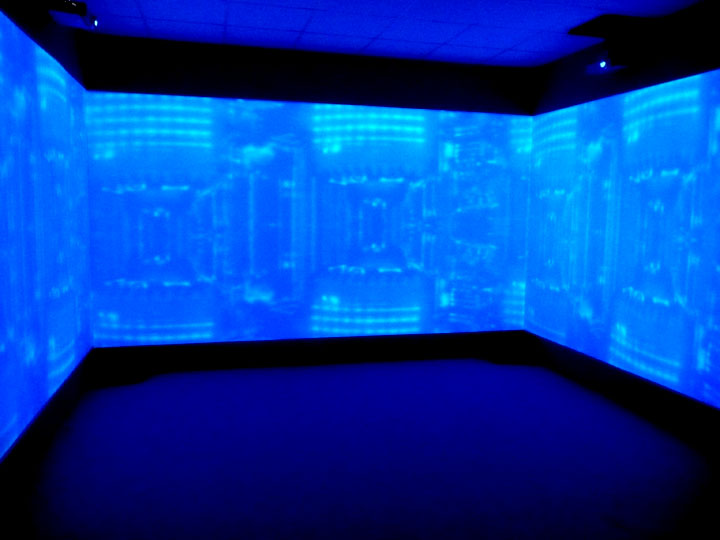 The technical process involved in creating the work began with photos of the city. The photos were duplicated with various kaleidoscopes; fragments of the city were worked with animation. Then two different frames from the film were “melted” to create a third frame which came about randomly. That frame was fed into a computer for further 3D animation processing.